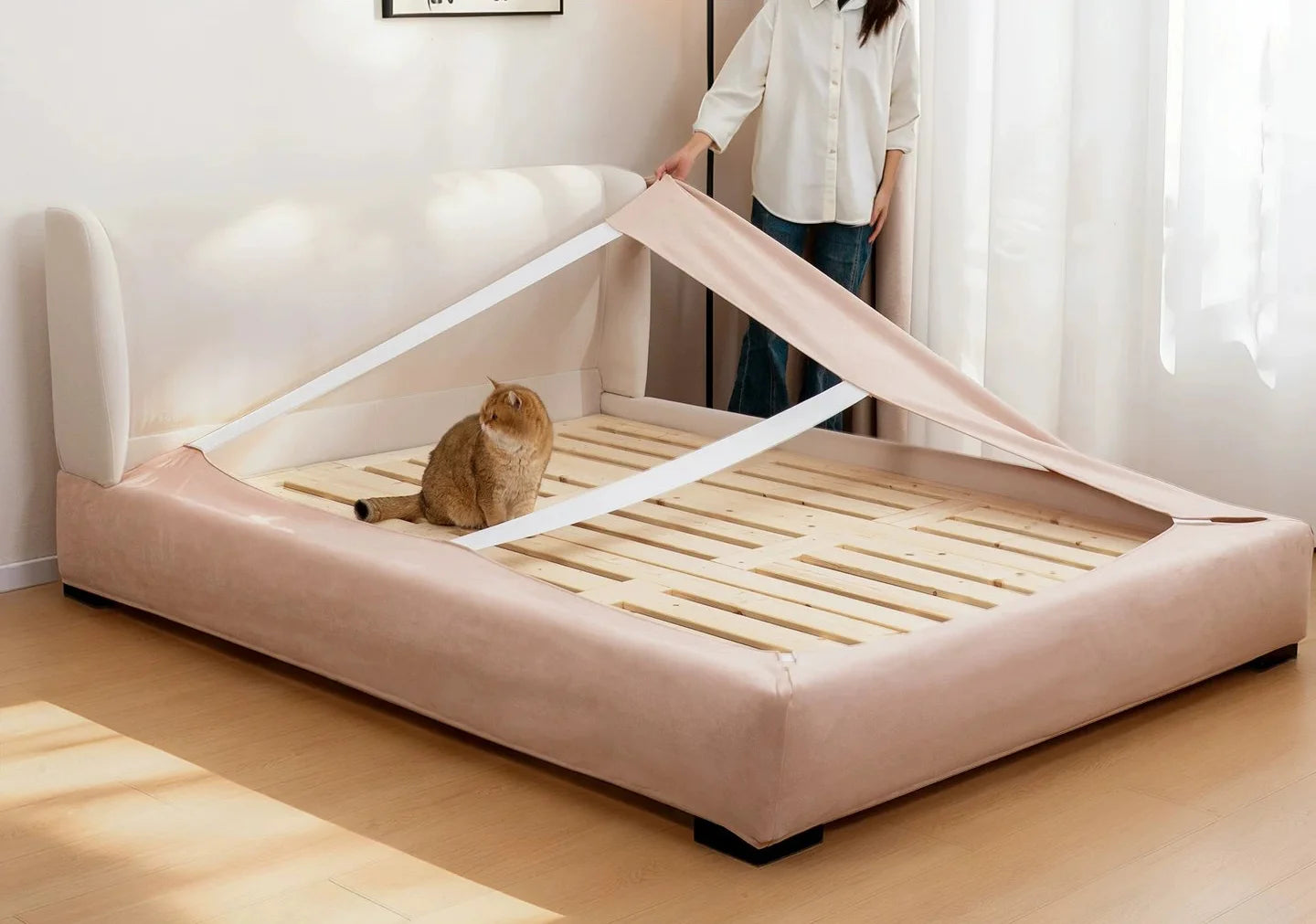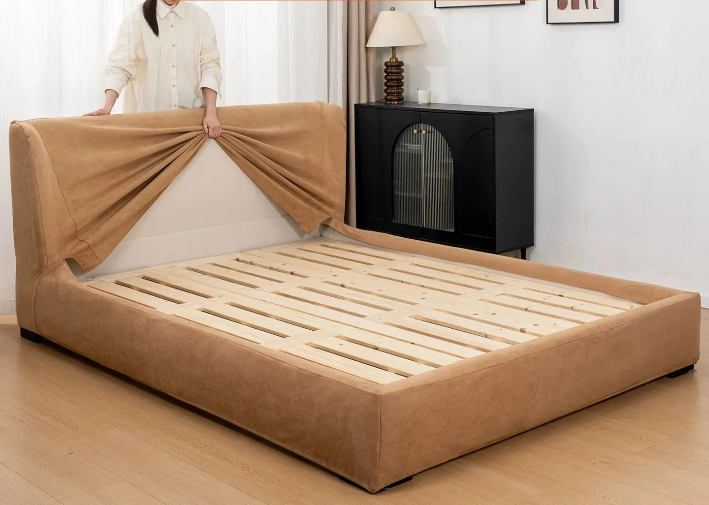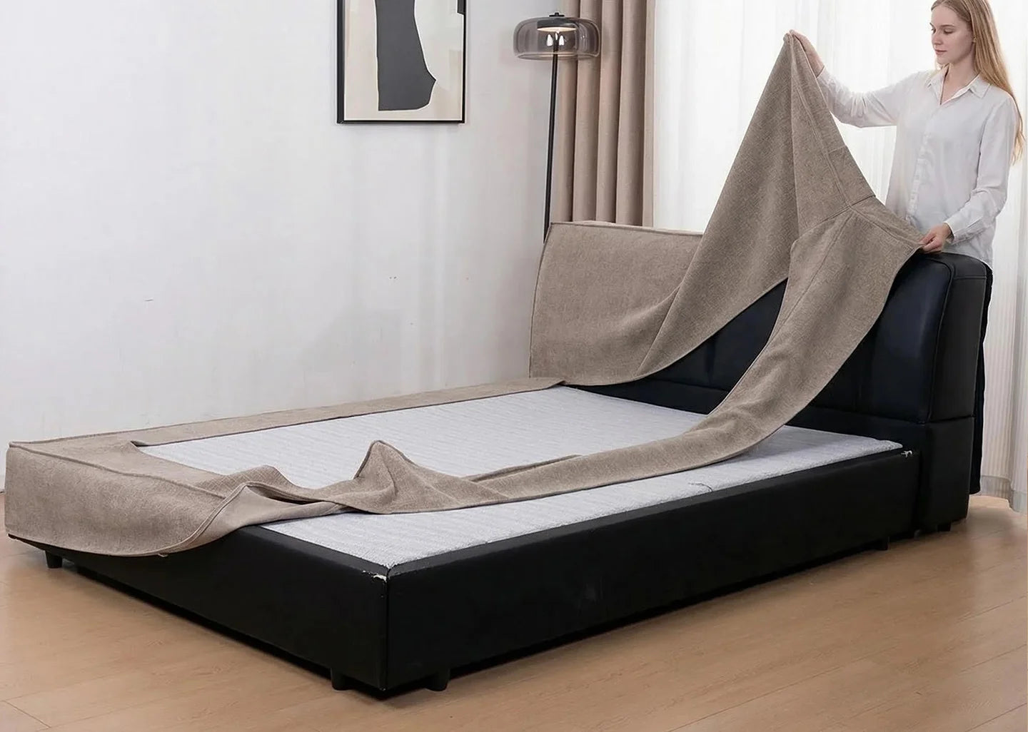 A custom-fit bed frame cover that instantly transforms your bedroom into a calm, polished space.