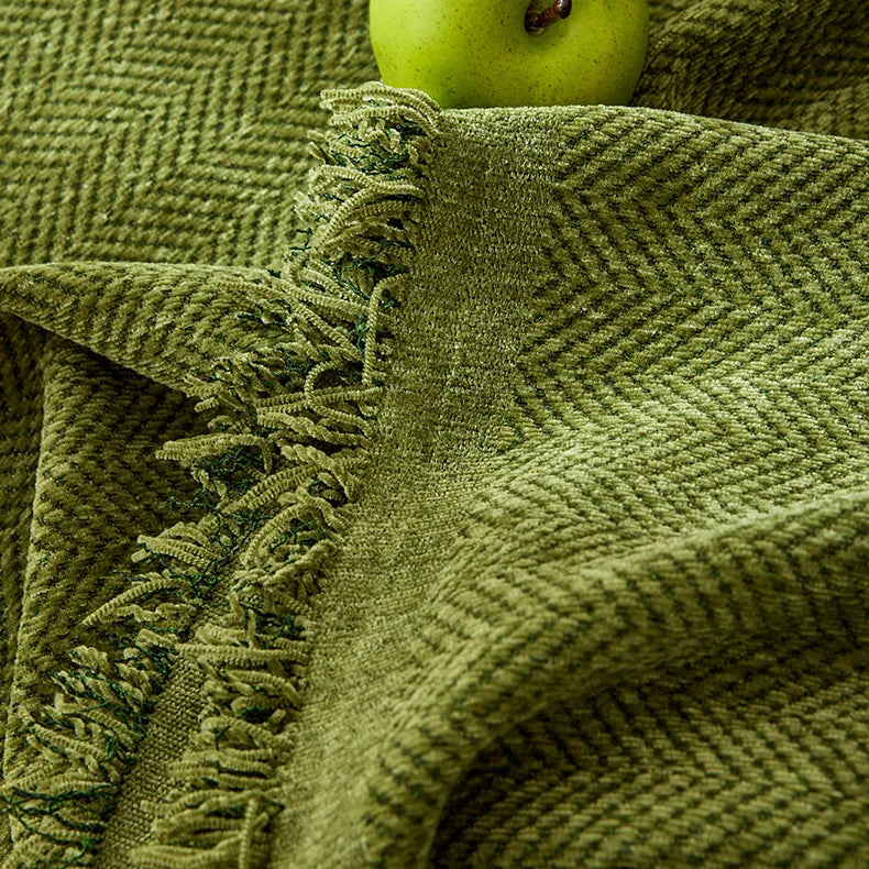 Chenille Solid Woven Stretch Sofa Blanket - Green