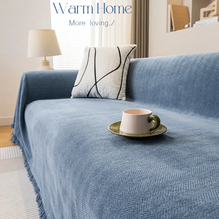 Chenille Solid Woven Stretch Sofa Blanket - Greyish Blue