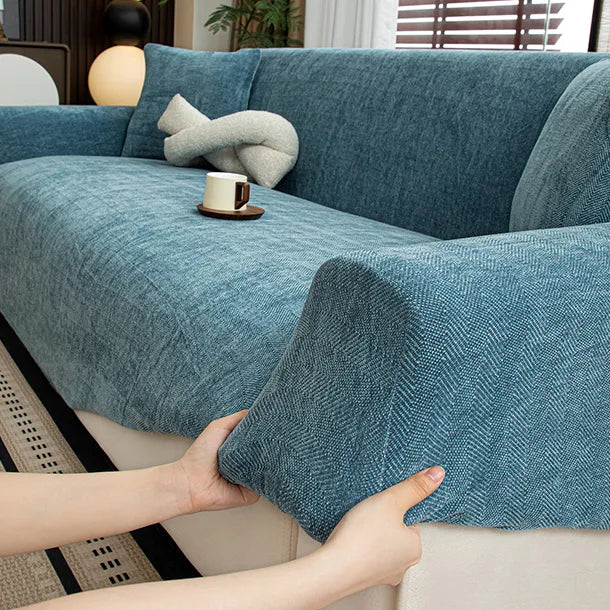 Chenille Solid Woven Stretch Sofa Cover - Greyish Blue