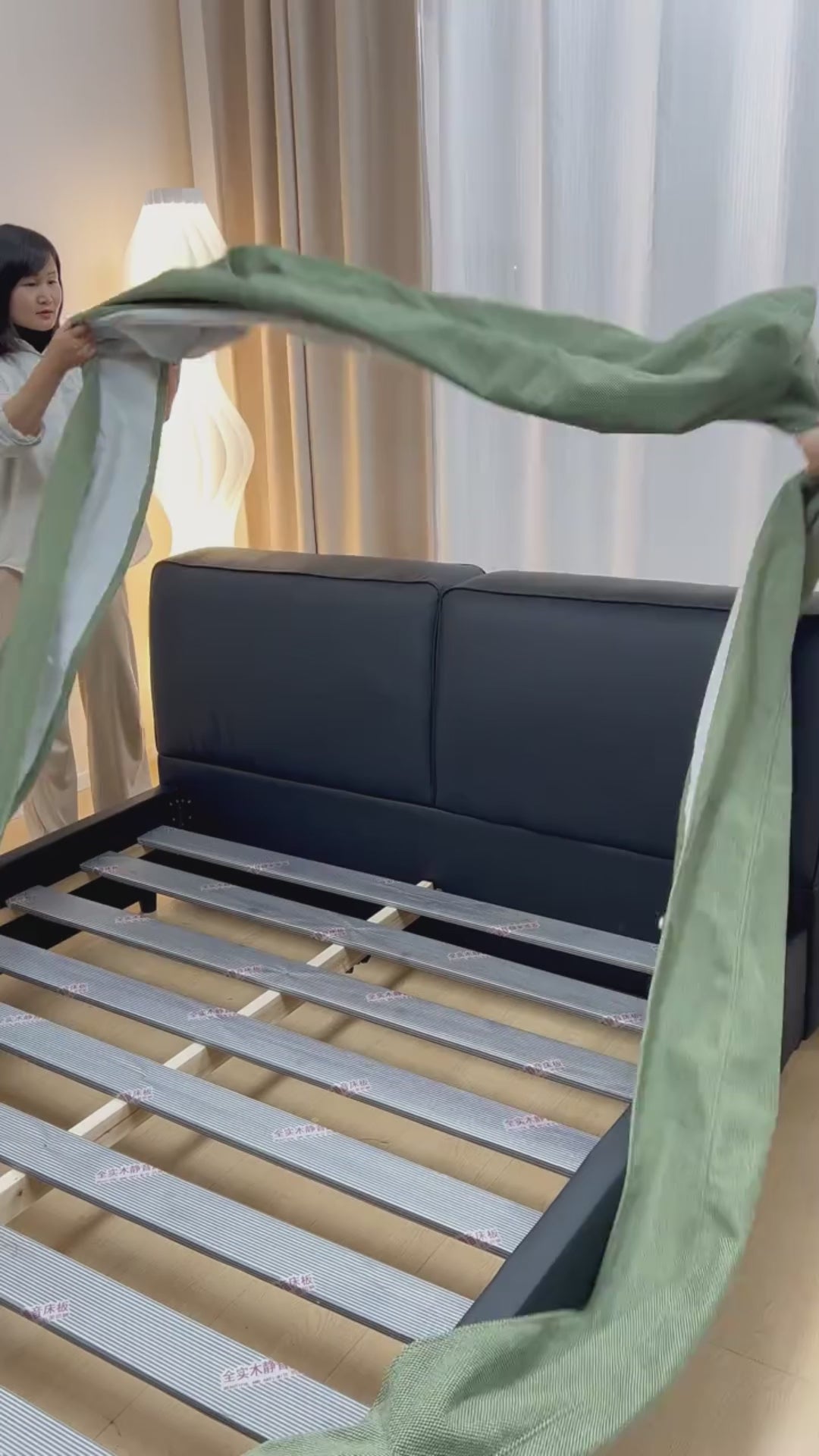 The cover will be made in two pieces, a headboard slipcover (removable) and a bed frame cover.