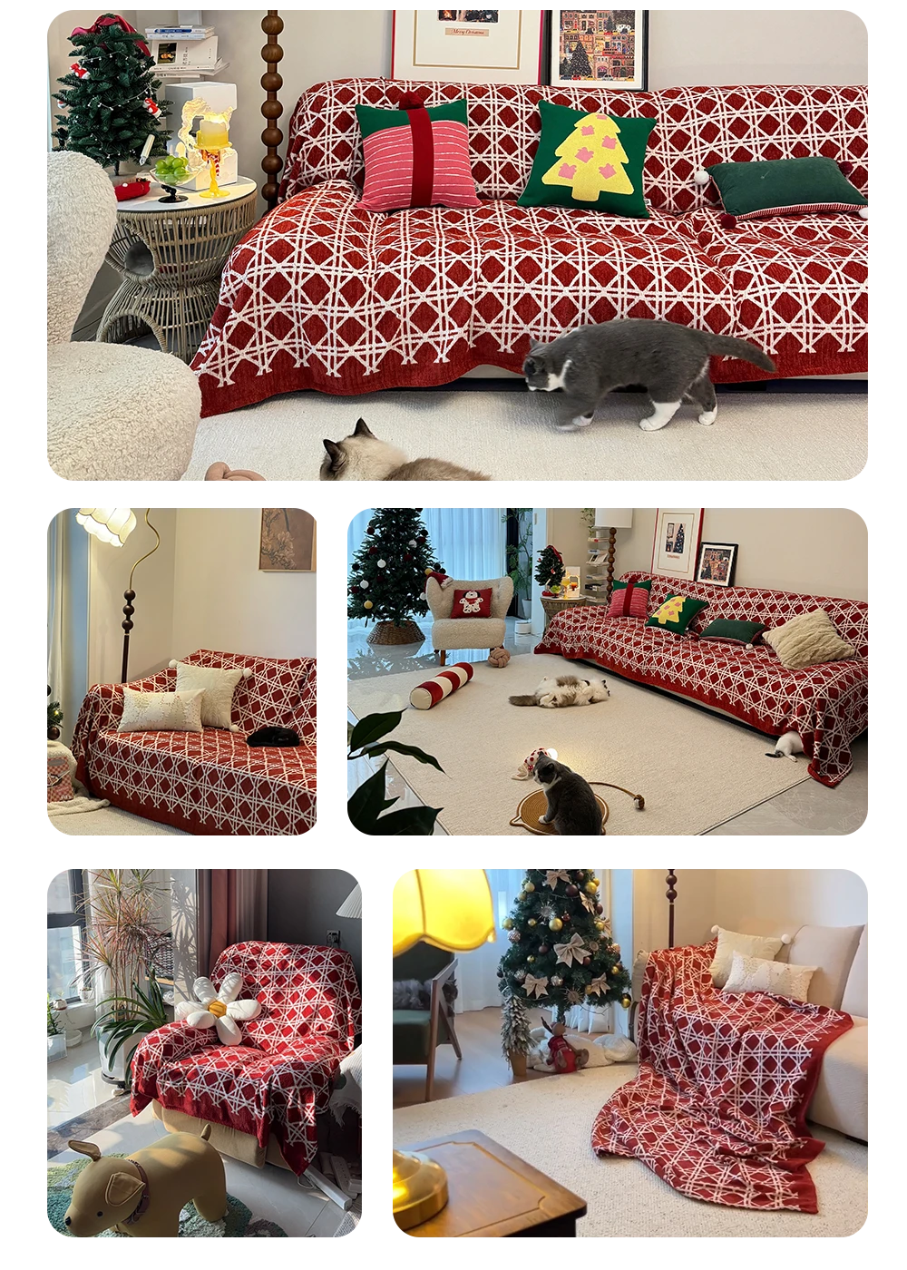 Bring festive warmth and effortless style to your home with our Red Checkered Glutinous Rice Velvet Sofa Cover, a handcrafted piece that transforms your sofa into a statement of comfort and sophistication.