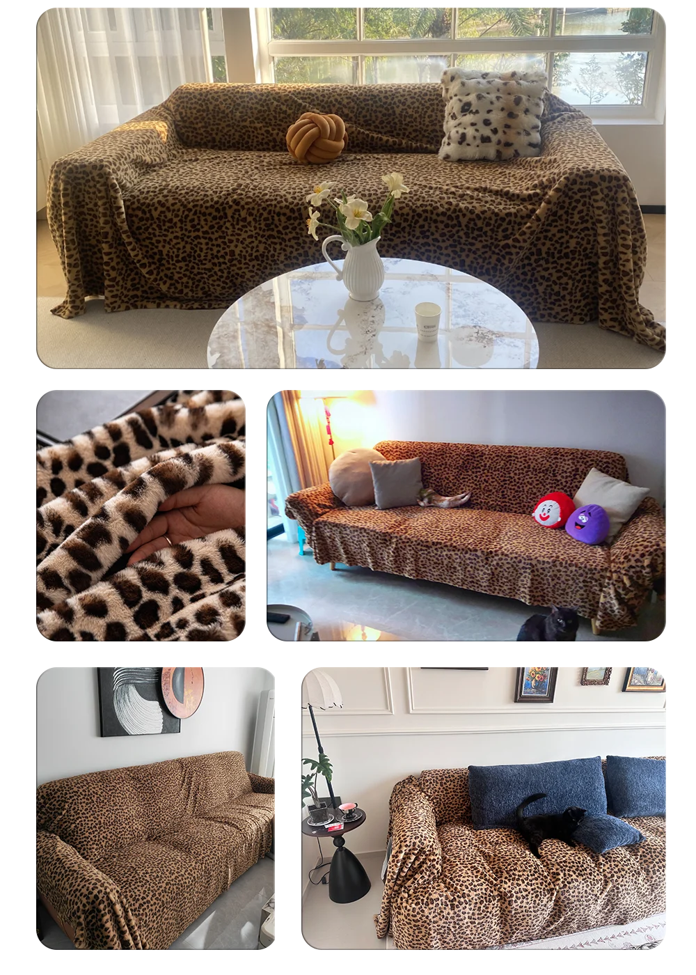 G 903 Leopard Print Plush Fleece Sofa Cover | Luxury Warm Custom Cover